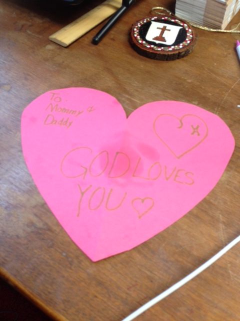 The children did a wonderful job of this, and stood with me at the door following the service, handing them out. Most of the notes were small, but Caroline did do an oversized one for Robert and me: