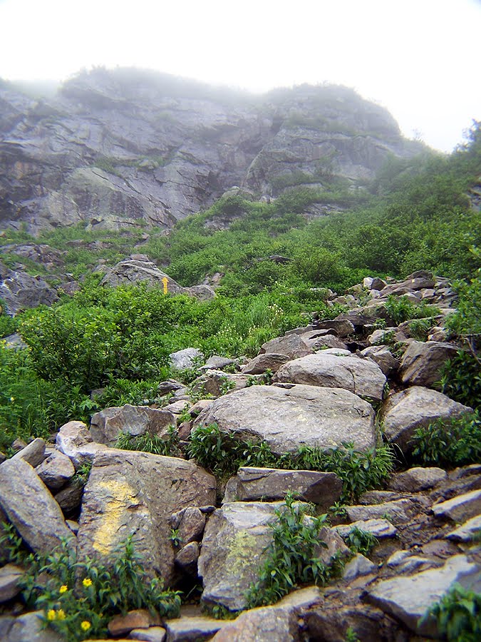 7. Yesterday morning I discovered in my Google Reader two distinct posts about fear, from Seth Godin and Donald Miller. I’ve been thinking about fear ever since my hike. Going up Mt. Washington is a pretty minor thing on the fear scale, but there definitely is some danger involved. Tuckerman’s Ravine is rather steep and many of the rocks were slippery from a recent rain. I found it easy to get into a fearful place, especially as I plodded up the mountain while people lightly picked their way through the rocks all around me, breathing easily as they told each other their life stories. (Seriously. VERY little heavy breathing from the tanned and toned set. We hate them.) About ten minutes after my boot self-destructed on the way up, we ran into a family with a ten year old girl coming down, and the girl had just bruised her leg scrambling down one of the steep, slippery sections. She was crying in that “I am DONE” sort of way. I hear ya sister.